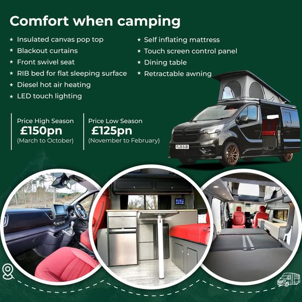 ✅ Ultimate Comfort – Blackout curtains, diesel heating, LED touch lighting & a self-inflating mattress 🛏️