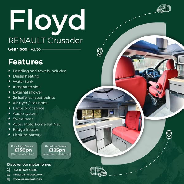 We’re giving YOU the chance to explore Scotland in Floyd, the UK’s FIRST Renault Crusader Escape Campervan – completely FREE for a whole weekend! 🌲🏔️