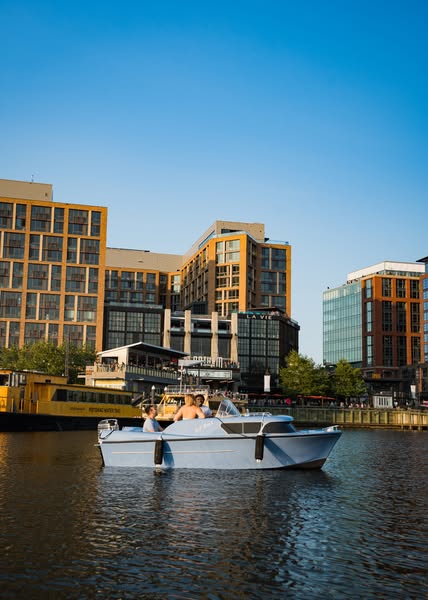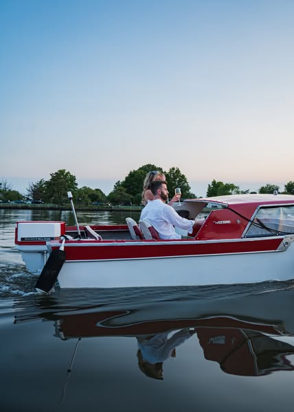 Explore Retro Boat Rentals at The Wharf — stylish, shaded, and self-driven.