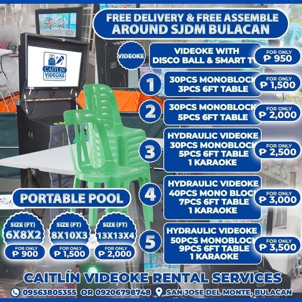搜索关键词 Videoke Rental Bulacan, Videoke San Jose del Monte, Party Rental Philippines, Karaoke Rental Services, Affordable Videoke Rental, Chairs and Tables Rental, Caitlyn Videoke Rental优势 Trusted Videoke Rental,Modern Hydraulic Videoke,Early Reservation Accepted,Disco Lights Included,Latest/Updated Songs,Free Delivery (SJDM Bulacan),Available for All Occasions