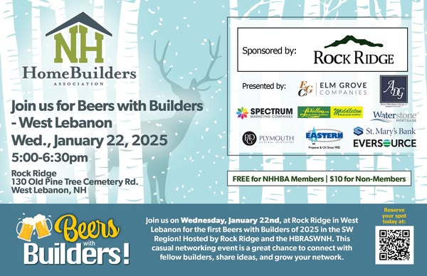 We have two great events coming up near you! 16 January we will be in Nashua NH and on 22 January we will be in West Lebanon NH. Both of these are fantastic, casual networking events. No charge if you are a NHHBA member and $10pp if you are not a member. I hope you can join us - Matt Mayberry, CEO, NHHBA