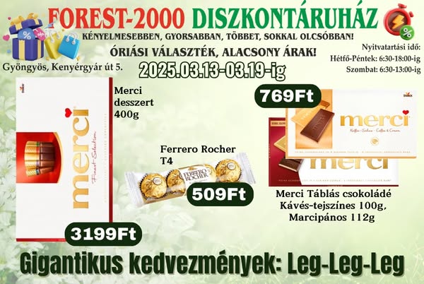 搜索关键词 grocery discounts, hungary food, easter chocolate, free dare chocolate, local store, discount shopping, food deals, household goods, family shopping, real forest优势 Large discounts,Wide product selection,Easter-themed products available,Free chocolate with every purchase,Local taste focus,dessert lottery for sharers