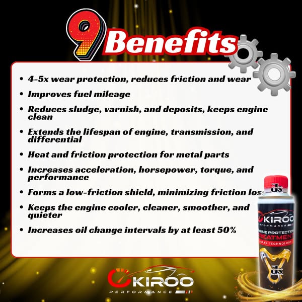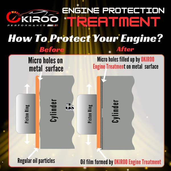 ✅OKIROO Engine Protection Treatment will penetrate into crevices of micro-pores and form a tough low friction shield.