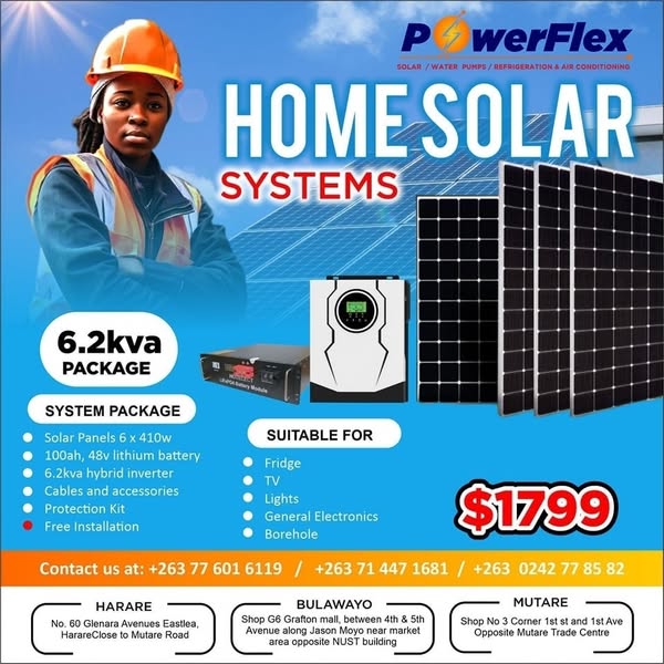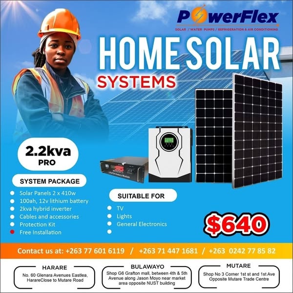 搜索关键词 affordable solar system, home solar power, office solar system, Zimbabwe solar, cash on delivery, green energy, powerflex solar, reliable solar power, lithium battery solar, warranty solar system优势 Affordable pricing,Reliable performance,Delivery service available,Cash on delivery option,Warranty included