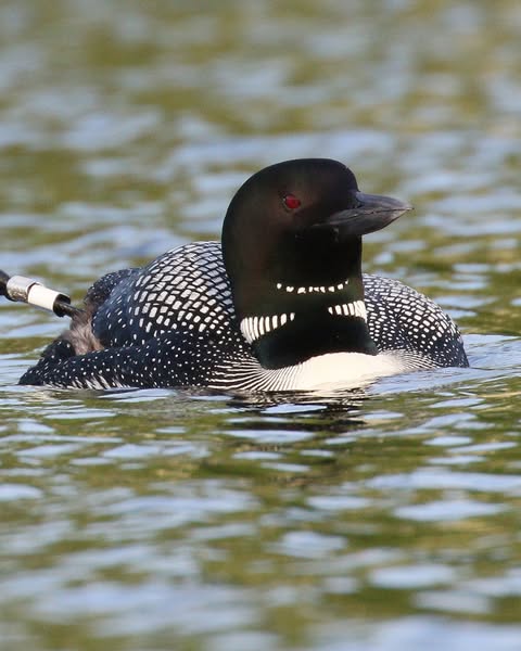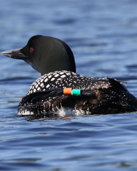 This week’s featured loon is a female who was originally banded on Massabesic Lake in 2014, a year when she hatched chicks. This summer, she is at least 14, but more likely 17 or older. Her band combination is: left leg green over orange, right leg white over silver.