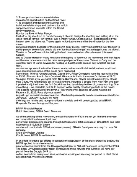 Here's the bi-annual news letter from the Broad River Watershed Association. Please become a member of the Savannah River Keeper and the Broad River Watershed Association.