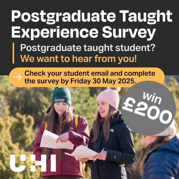 Calling all postgraduate students! ➕ The deadline for the Postgraduate Taught Experience Survey is Friday 30 May 2025. This is your chance to have your say and help us improve the UHI experience. Check your student email for your personal link!