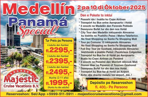Tur nos paketenan tin mas kontenido 💯, desayuno 😋 Bufèt 🍲 tur dia 😍 anto tur tour 🚌 ku nan Almuerso garantisá ✅️!