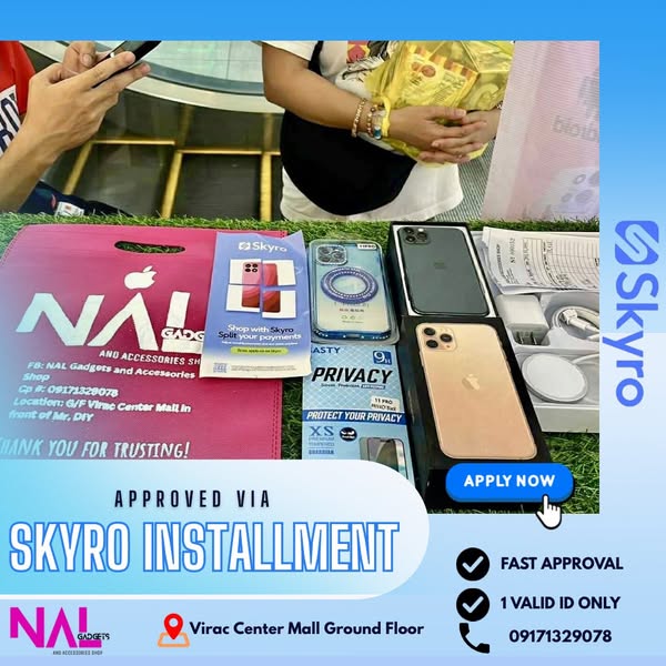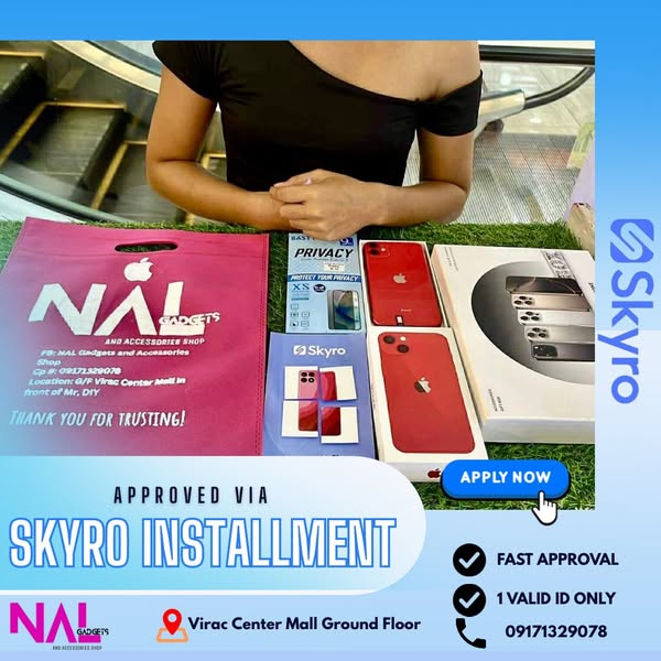 搜索关键词 NAL Gadgets, iPhone installment, Skyro installment, Macbook Philippines, Affordable iPhones, Virac Center Mall, Mobile Devices Philippines, Buy Now Pay Later, Online payments, Gadgets Philippines优势 Easy installment plans with Skyro, Home Credit, and Salmon,Wide range of payment options,Availability of both new and pre-owned devices