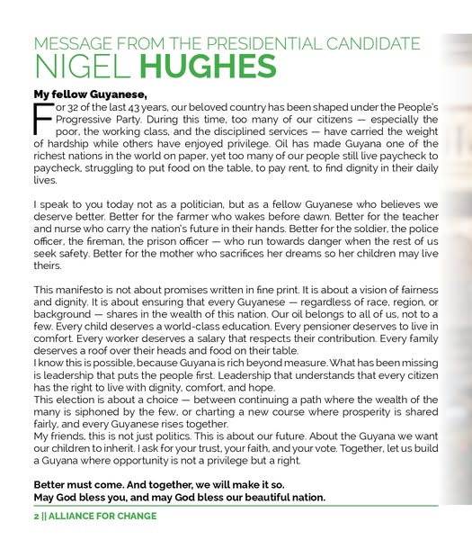 MUST READ: The Alliance For Change officially launches its Plan of Action Manifesto — Putting Food on Your Table, A Roof Over Your Head, and Money in Your Pocket. A practical vision to move Guyana upward, ensuring prosperity, security, and opportunity for every citizen. @followers @topfans #BetteMustCome #AllianceForChange #VoteForTheKey #Elections2025