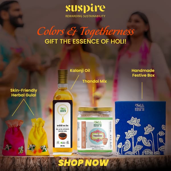 Transform your Holi gathering with our complete festival package: gentle herbal gulal, authentic thandai mix, and aromatic Kashmiri kahwa. Each element carefully crafted to honor tradition while respecting your health and our planet. Celebration without compromise, delivered in our signature sustainable box.