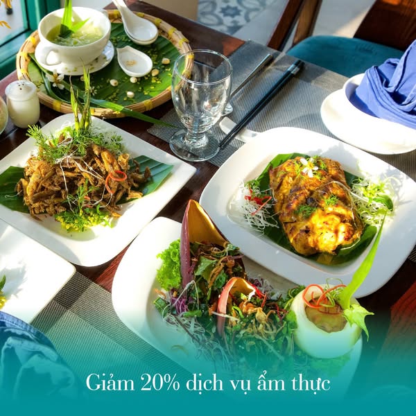 ✨ Giảm 20% dịch vụ ẩm thực (trừ đồ uống có cồn, set menu và dịch vụ tại phòng)