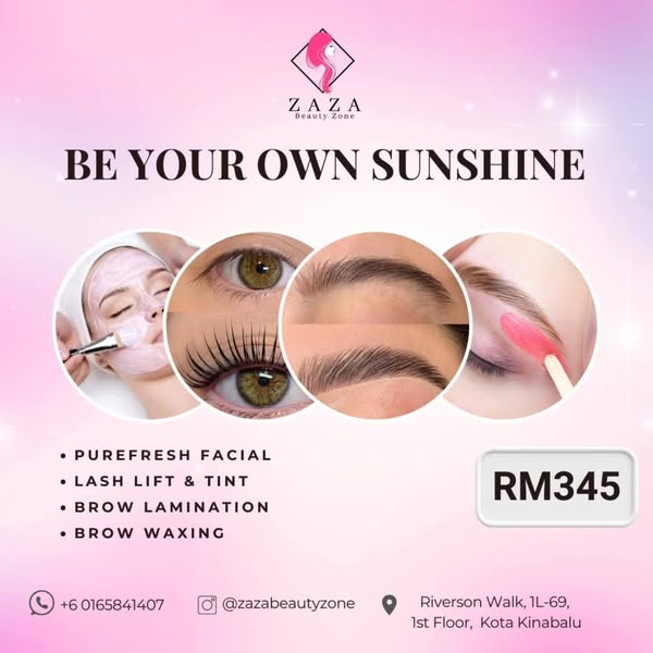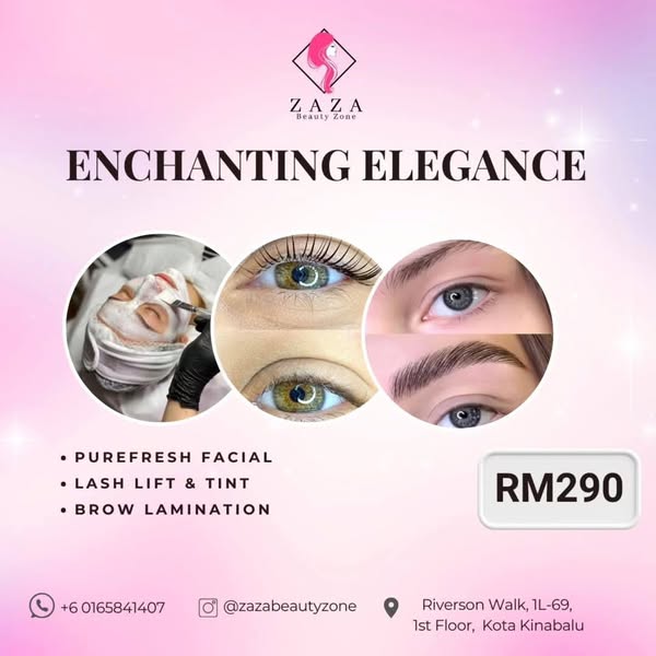 搜索关键词 beauty salon, lash extensions, eyebrow service, Kota Kinabalu, beauty treatment, pampering package, Zaza Beauty Zone, Sabah, beauty appointment, WhatsApp booking优势 Indulgent treatments,Convenient package,Easy appointment booking via Whatsapp