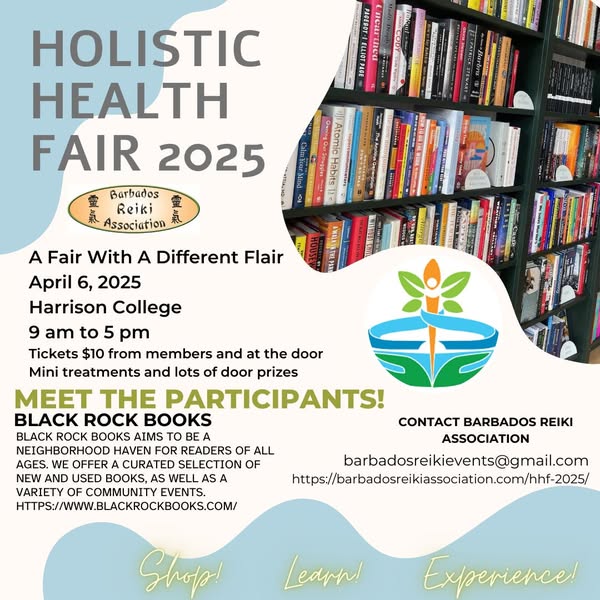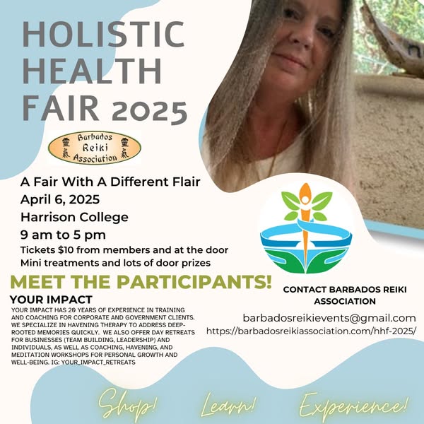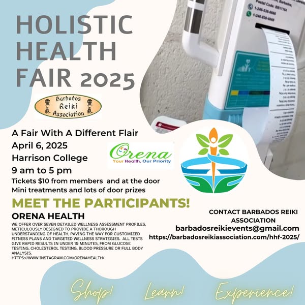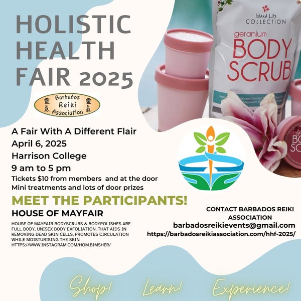 搜索关键词 holistic health fair, Barbados Reiki Association, therapies treatments, personal development retreats, gluten free flours, original art, health and wellness, shop learn experience, medical tests, body scrubs supplements优势 Variety of therapies and treatments,Product marketplace with diverse offerings,Opportunity to learn and experience