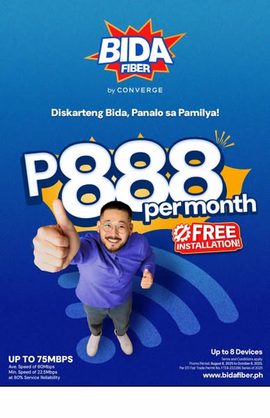 🔹 Bida Fiber: Up to 75Mbps at ₱888