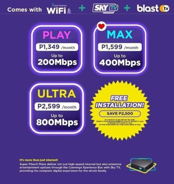 搜索关键词 converge fiber, unlimited internet, fiber internet plans, netflix bundle, cable tv, philippines internet, home wifi, internet service provider, affordable internet, fast internet优势 Unlimited Internet,Free Installation,Various Plans Available,Netflix and Cable Bundles,Payment via Installment