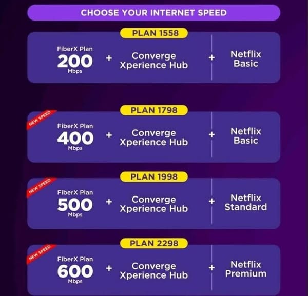 搜索关键词 converge fiber, internet davao city, fiber internet plans, unlimited internet, fast internet, netflix bundle, business internet, free installation, reliable internet, davao internet service优势 Fast and reliable internet plans,Free installation fee,Unlimited internet - no data capping,Various plan options (Regular, Super Bundle, FiberX + Netflix, Business)