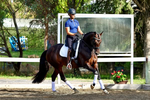 Having successfully competed up to Elementary level and already making strides at Medium, this remarkable mare is demonstrating outstanding potential in FEI movements like Piaffe, Passage, half passes, and canter pirouettes. Her natural ability and eagerness to learn make her a standout in any training program.