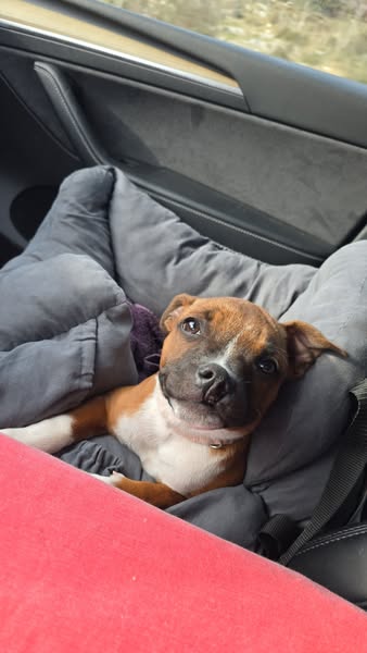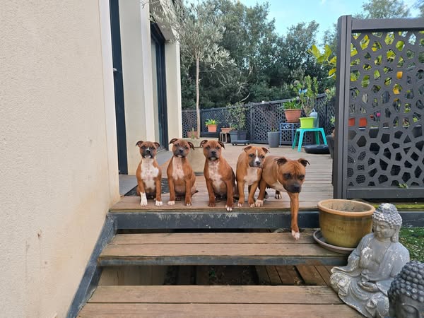 搜索关键词 Staffie adoption, puppy adoption, dog adoption, Staffordshire Bull Terrier, adopt Hope, family dog, puppy for sale, France dog, LOF Staffie, cleft lip puppy优势 Well-socialized (children, cats, chickens),Vaccinated and dewormed,Healthy (clear of genetic diseases),LOF registered (French Kennel Club),Good with leash