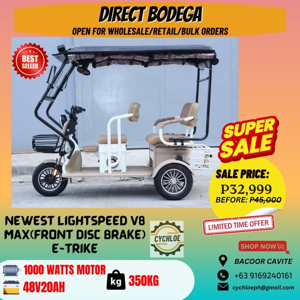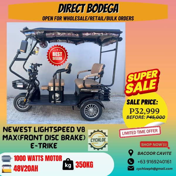 ⭐️🔘BEST SELLER! NEWEST LIGHTSPEED V8 MAX (FRONT SIC BRAKE) E-TRIKE - 𝐒𝐔𝐏𝐄𝐑 𝐒𝐀𝐋𝐄: 𝐏𝟑𝟐,𝟗𝟗𝟗 (SRP P45,000)