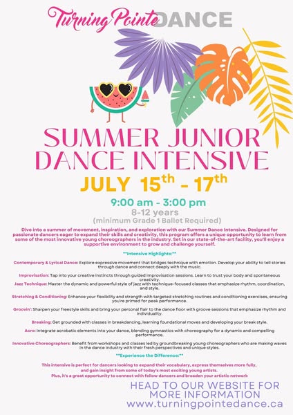 搜索关键词 dance camps, summer program, kids activities, crownsnest pass, registration open, dance education, fun learning, all ages, summer dance, dance and scenery优势 All ages, levels and abilities welcome,Engaging themes,Fun and learning combined,Beautiful scenery