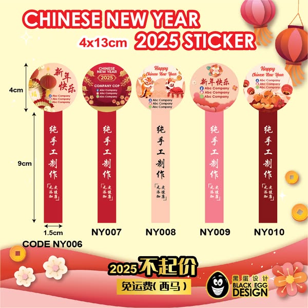 搜索关键词 cny sticker, new year sticker, sticker printing malaysia, online sticker printing, cheap sticker printing, custom sticker label, 2025 sticker label, free sticker template, small business sticker, affordable sticker优势 Affordable price,Small quantity printing available,Free shipping to West Malaysia,58 free templates,Simple design service available,Free shipping,Buy X get X free