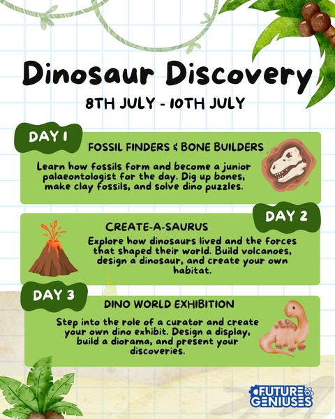 🦕 This week’s theme: Dinosaur Discovery | 8–10 July