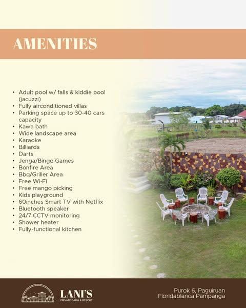 搜索关键词 Private farm resort, vacation rentals, family events, team building activities, villa accommodation, Philippine resorts, intimate gatherings, barkada outings, wedding venues, birthday parties优势 Spacious and homey villa,Suitable for various events and gatherings,Newly opened