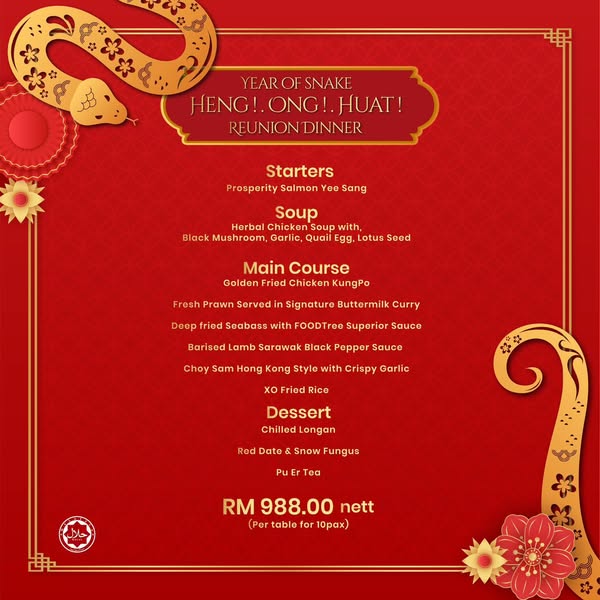 搜索关键词 Chinese New Year dinner, Reunion dinner Malaysia, TheFoodTree restaurant, Heng Ong Huat set, Lunar New Year 2025, CNY feast, Family dinner promotion, Restaurant promotion Malaysia, Affordable dinner set, Prosperity and joy优势 Affordable price points (RM78/RM98),Perfect for Chinese New Year reunion dinners,Emphasizes deliciousness and joy