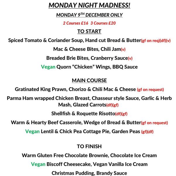 This is out last Monday Night Madness until January so we are putting out some great dishes to get you all warmed up ready for Christmas!!