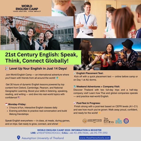 🎉 Final Call! World English Camp 2025 - International Youth Camp, Ages 10-24, ค่ายเยาวชนนานาชาติ อายุ 10-24 ปี พร้อมทุนส่วนลด 20%! (20% OFF – Apply now!)