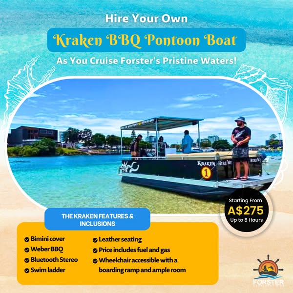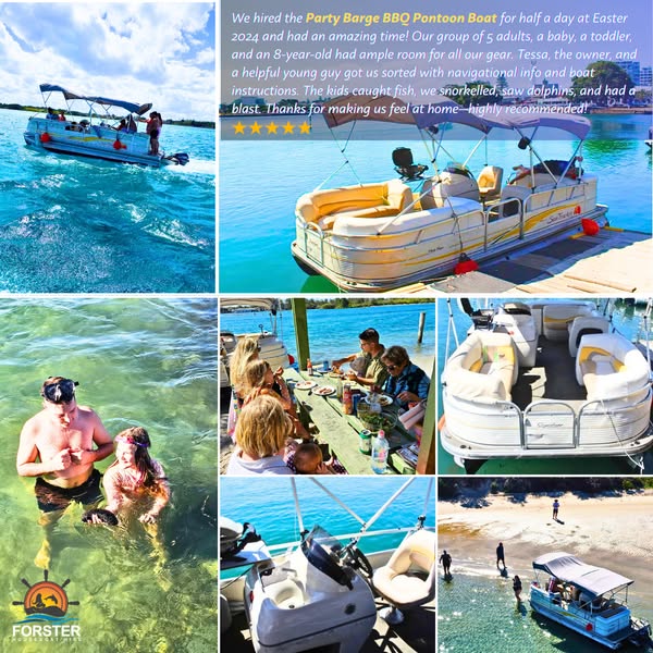 Your own party Barge! Perfect for parties, your 12-seater includes a full Bimini cover, Weber BBQ, Bluetooth stereo, and comfy leather seating. Pricing from A$425 for 4 hours. Twilight hire available.