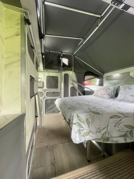 Picture this: after a day of exploring, relax in your favourite camping chair while you unwind with a final nightcap, then retreat to your van for a peaceful sleep. And what could be better than sinking into a King Size semi-island bed? No more crawling over each other to reach your pillow—just pure comfort to drift off to sleep, dreaming of tomorrow’s adventure.