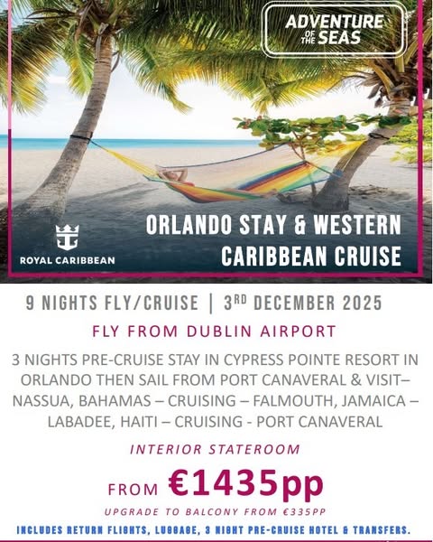 搜索关键词 Royal Caribbean Cruise, Halloween cruise, couples retreat, Asia cruise, Ireland travel, Tully's Travel, cruise deals, vacation offers, family holiday, cruise booking优势 Unmissable offers,Variety of destinations (Halloween, couples retreat, Asia),Licensed and bonded in Ireland