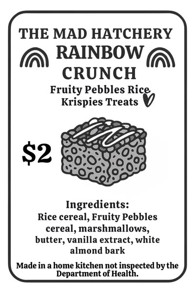 🌈 Rainbow Crunch (Fruity Pebble Rice Krispies) – $2
