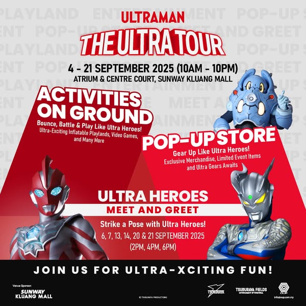 Our Ultra Heroes are about to land in Sunway Kluang Mall in September — you're invited to pose and power up like never before at the 𝗨𝗹𝘁𝗿𝗮𝗺𝗮𝗻: 𝗧𝗵𝗲 𝗨𝗹𝘁𝗿𝗮 𝗧𝗼𝘂𝗿!