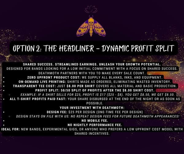 Facing budget constraints for merchandise? Problem solved. Our on-demand service enables payment from the profit of sold items, with DTF and screen printing available. 💰👕🎨 #Merch #Printing #Service #Profit #Screenprinting #DTF