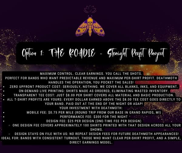 Facing budget constraints for merchandise? Problem solved. Our on-demand service enables payment from the profit of sold items, with DTF and screen printing available. 💰👕🎨 #Merch #Printing #Service #Profit #Screenprinting #DTF