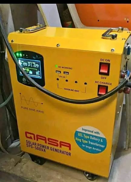 . THIS 500va CAN CARRY YOUR 2 TO 3 BEDROOM FLAT CONVENIENTLY. AND IT WILL POWER ALL YOUR ELECTRICAL APPLIANCES AT HOME SUCH AS YOUR::: TELEVISION, SOUND SYSTEM, DSTV, PUMPING MACHINE, PRESSING IRON, MICRO WAVE, AIR CONDITIONER, REFRIGERATOR, FREEZER, BLENDER, FANS, LIGHTS, Etc....... IF YOU WANT TO HAVE LIGHT IN YOUR HOUSE 24HRS EVERY DAY THEN THIS 500VA QASA SPG IS WHAT YOU NEED TO LIGHT UP YOUR HOME 🏡 AND IT IS VERY AFFORDABLE YOU CAN CHOOSE TO PAY ONCE OR EASY BUY WITH EASY REPAYMENT PLAN. MAINLY USED FOR:: HOUSE, SHOP, OFFICE, AND LAUNDRY BUSINESS ETC...