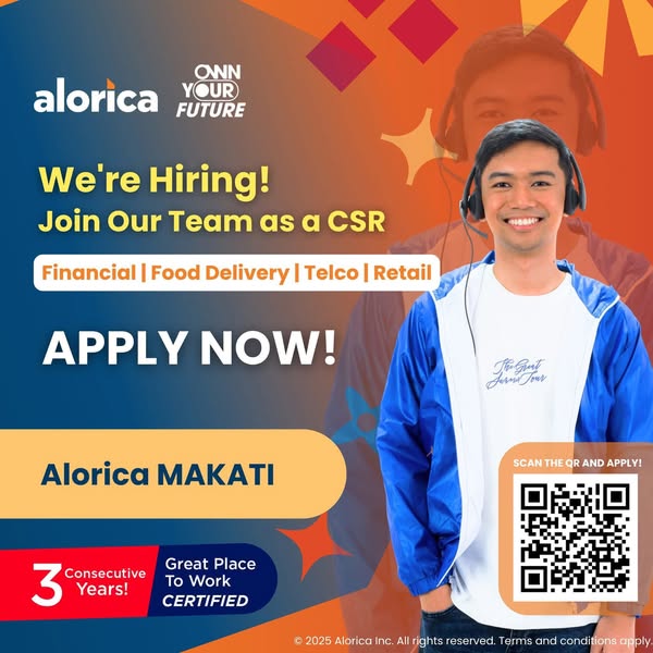 搜索关键词 Alorica careers, BPO jobs Philippines, Customer service jobs, Technical support jobs, Hiring Alorica, Call center jobs, Philippines jobs, BPO career, Online application, Employee Referral Program优势 Competitive salary (₱17,500 - ₱37,500/month),HMO/Medical coverage,Performance bonuses and incentives,Career growth opportunities,Fun and supportive work environment,Multiple locations,Newbies are welcome