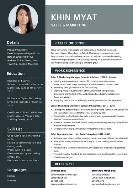 🔵 Are Written by Professionals: our writers have decades of experience going through thousands of CVs as Managers, Business Owners, and HR Recruiters in Myanmar and internationally. You can be assured that your CV is written professionally to international standards.