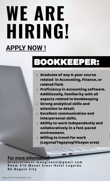 Email your updated resume to: hrrecruitment.manginasal@gmail.com