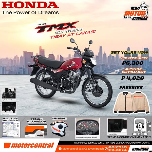 For walk ins, visit our branch located at:📍 Motorcentral Sala Cabuyao Branch(Near Shineland / Beside Royal Cable)