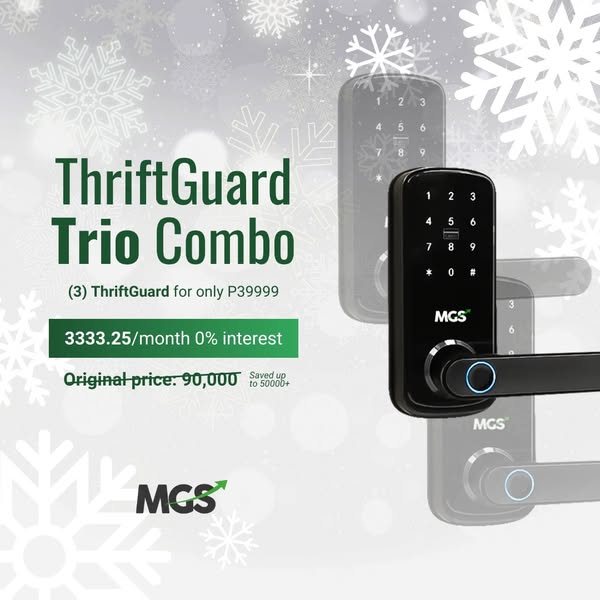 Get the MGS Smart Lock Bundle now and enjoy huge discounts on top-of-the-line security for your home. For as low as ₱1,000 down payment, you can reserve your slot today and secure this unbeatable deal! 🏡🔑💰 Upgrade your protection, elevate your style, and save big—all in one package. Don’t miss out!