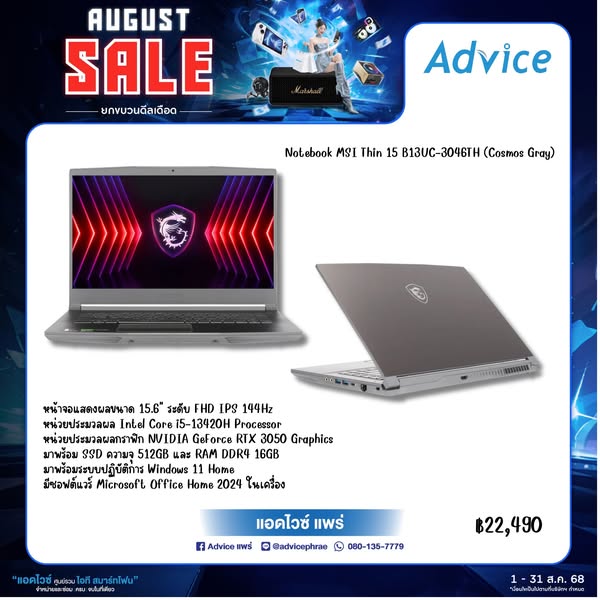 #Advice | #AdviceClub | #AdviceOnline | #แอดไวซ์ | #สินค้าไอที | #การันตีถูกสุดในประเทศ | #ลดแรงแซงทุกโปร | #คอมประกอบ | #โน้ตบุ๊ค | #คอมพิวเตอร์ | #ExtremeIT | #Notebook | #Comset | #PC | #GamingGear | #Gamer | #Smartphone | #Clearance | #Apple | #Speaker | #ผ่อนบัตรประชาชน"