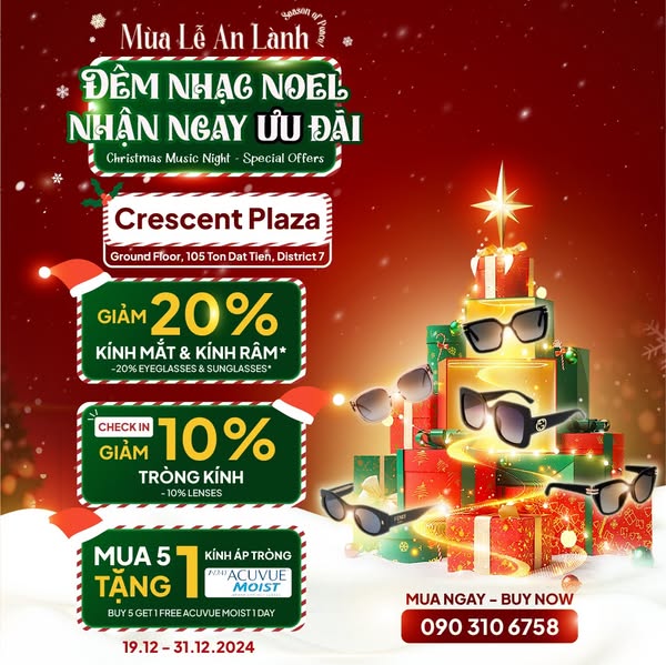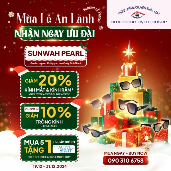 Từ ngày 19/12 đến 31/12/2024, cả hai chi nhánh của American Eye Center Optics sẽ mang đến chương trình ưu đãi cực kỳ hấp dẫn: