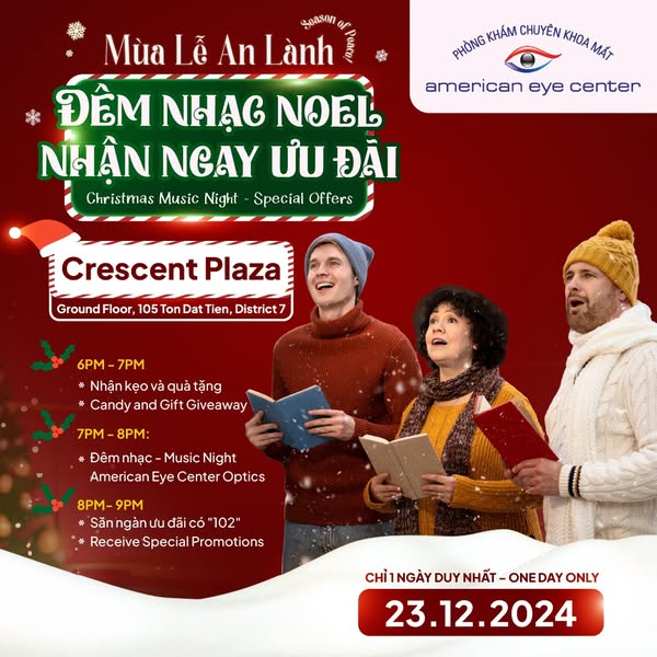 Only 1 Day - December 23, 2024, join the festive event at American Eye Center Optics - Ground Floor, 105 Ton Dat Tien, Tan Phu Ward, District 7.