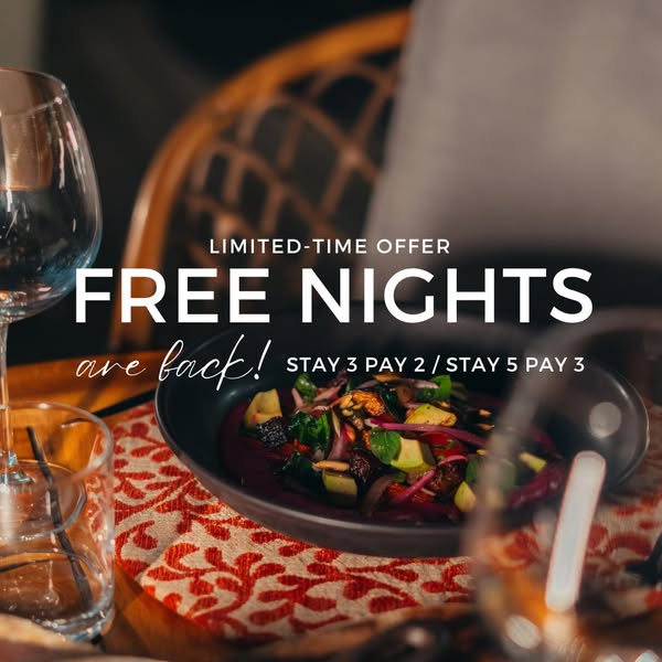 Soak in our rooftop infinity pool overlooking Soliman Bay. A private oasis above it all.