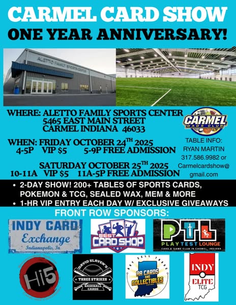 搜索关键词 card show, VIP tickets, giveaways, sports cards, collectibles, card shop, local shop promotion, indy card exchange, best card shop, hi5 cards优势 Free VIP tickets,Opportunity to win cash, signed memorabilia, and sealed products,Support local card shops