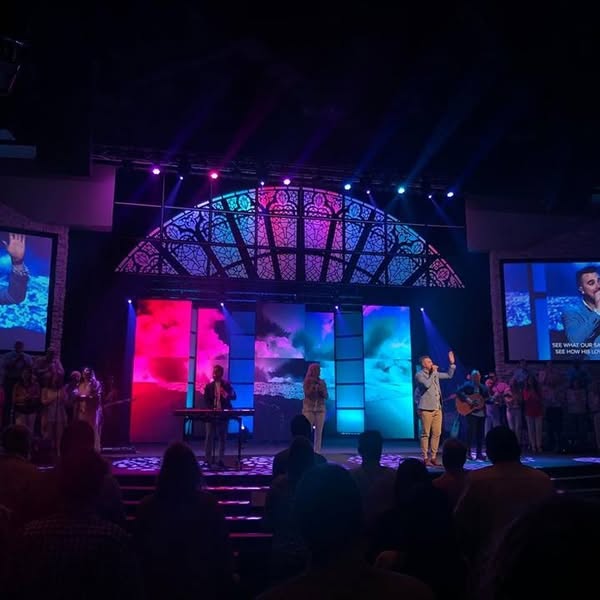 Destiny Worship Center is glowing with our #1 best-selling set — the Stained Glass Rosette! This design creates a beautiful display in any dimension of space — and did you know our panels can even be flown in the air for elevated impact? Talk about taking worship to the next level 🙌